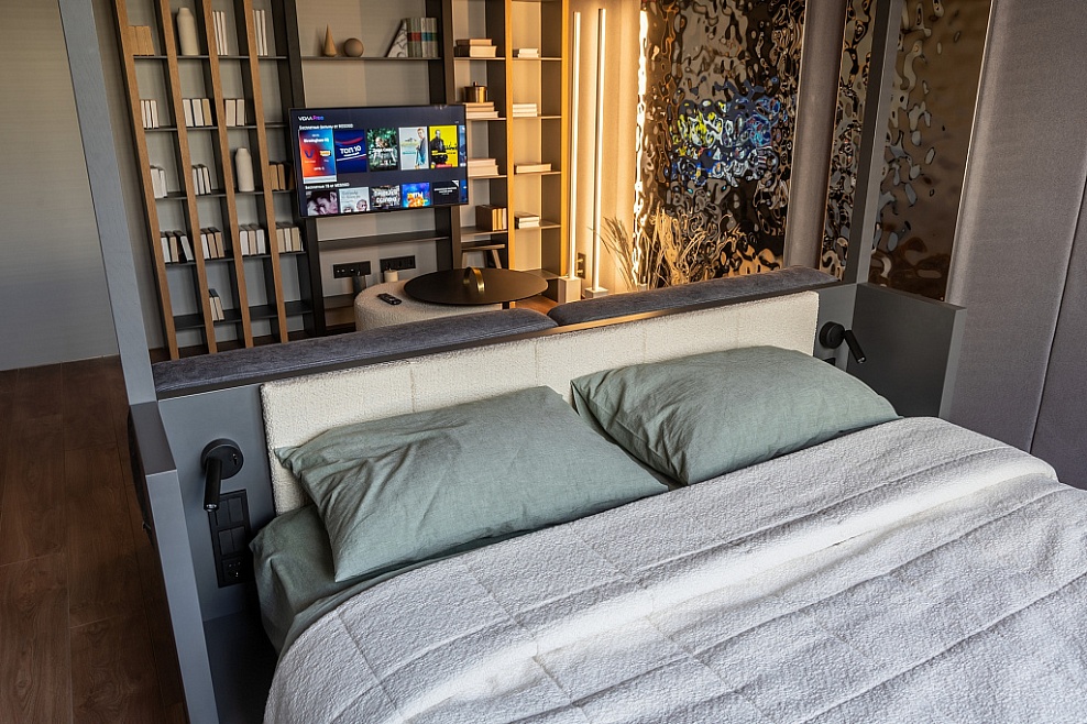 Спальня-гостиная с чёрным кубом 8