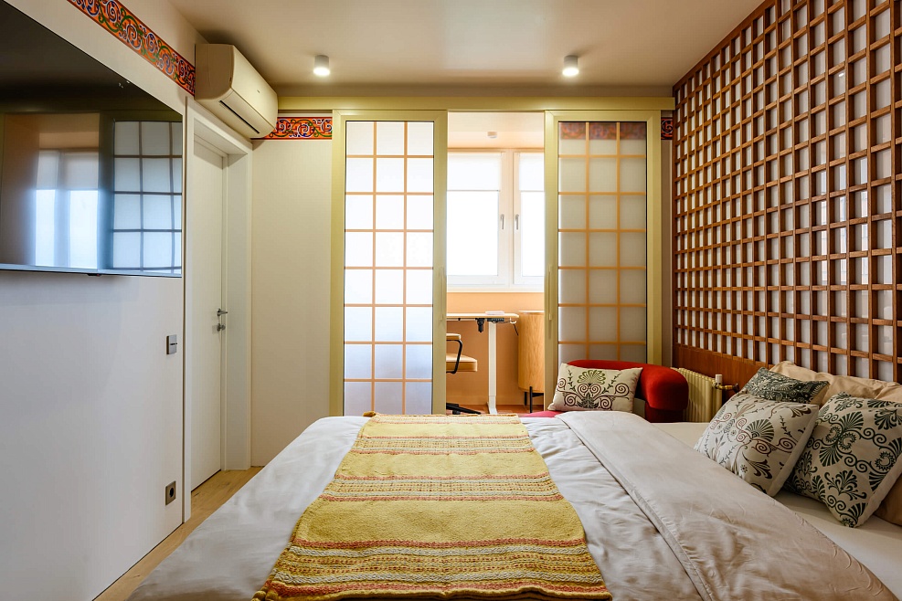 Преображение комнаты началось с монтажа светящейся стены, сделанной в японском стиле «кумико»: