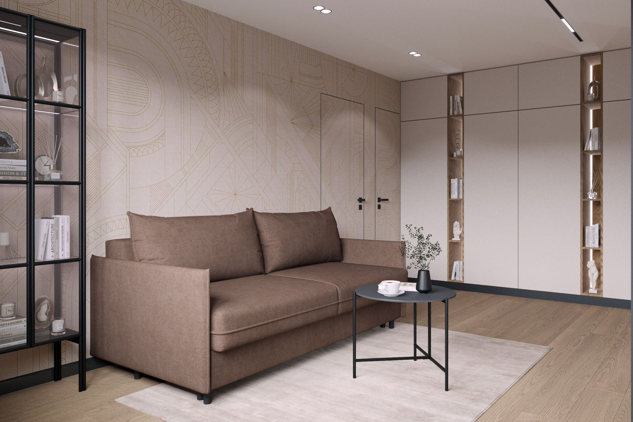 Простота конструкции, лаконичный декоративный кант в качестве декора позволяют дивану органично вписаться в современные интерьеры в скандинавском стиле.