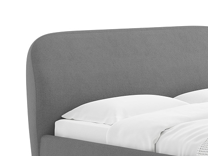 Кровать Katrin сочетает в себе модные тенденции – выглядит легко и лаконично. Мягкая форма изголовья с черными и тонкими опорами выглядят выразительно и подойдут любому современному интерьеру.  Задняя часть спинки в ткани, благодаря этому кровать можно установить в центре комнаты. Увеличенная прочность кровати достигается за счет металлического каркаса по периметру. Модель укомплектована ортопедическим основанием с ламелями. Благодаря высокому просвету не возникнет проблем с уборкой, в том числе проходимостью робота – пылесоса. Исполнение доступно во всех видах ткани.