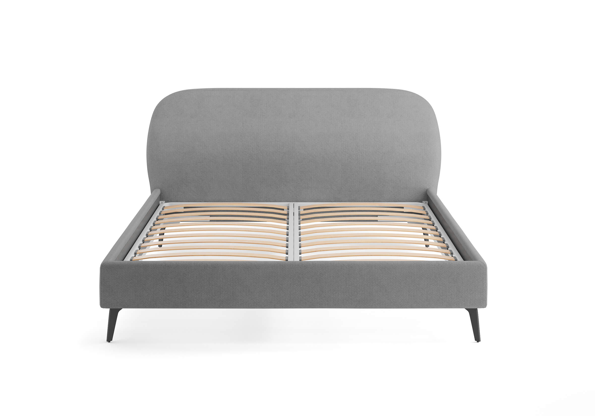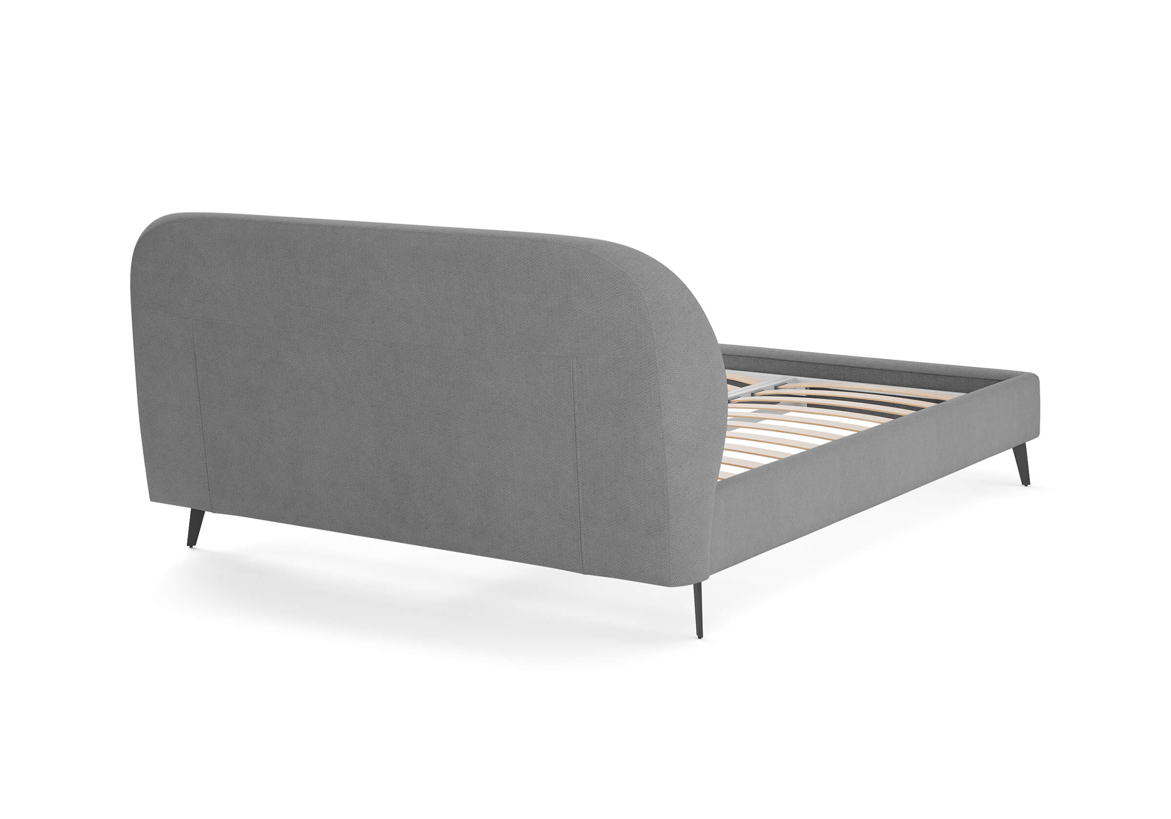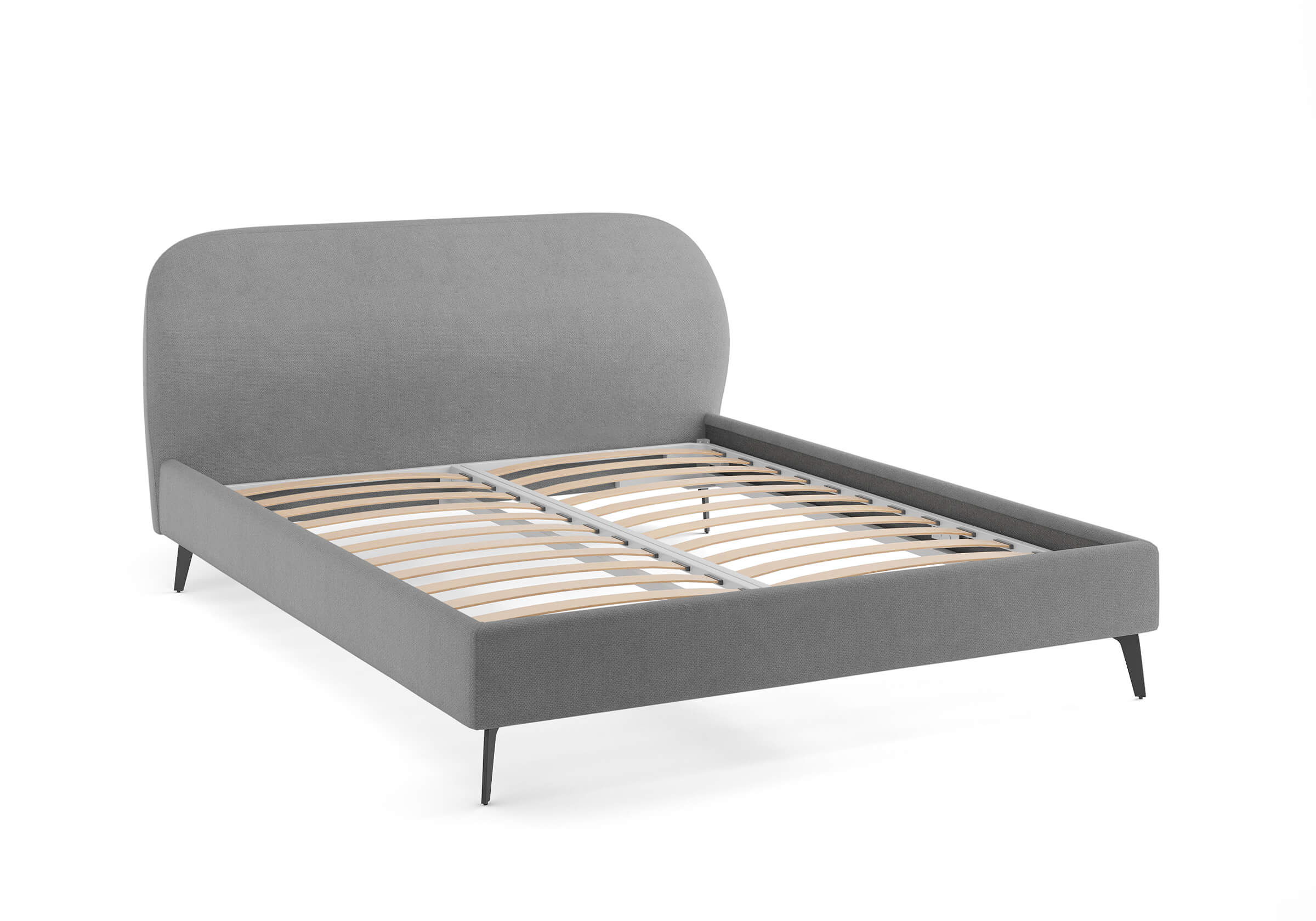 Кровать Katrin сочетает в себе модные тенденции – выглядит легко и лаконично. Мягкая форма изголовья с черными и тонкими опорами выглядят выразительно и подойдут любому современному интерьеру.  Задняя часть спинки в ткани, благодаря этому кровать можно установить в центре комнаты. Увеличенная прочность кровати достигается за счет металлического каркаса по периметру. Модель укомплектована ортопедическим основанием с ламелями. Благодаря высокому просвету не возникнет проблем с уборкой, в том числе проходимостью робота – пылесоса. Исполнение доступно во всех видах ткани.